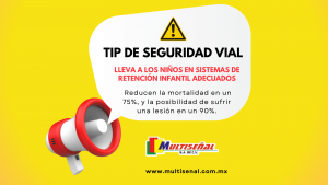 Sistema de retención infantil, al llevar a los niños en este sistema se logra reducir la mortalidad en un 75%, y la posibilidad de